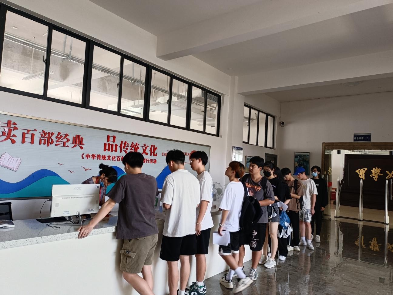为配合学校做好大三学生的离校工作,自2023年6月3日起,图书馆在各个服务窗口增派工作人员,中午不休息,加班加点为学生办理离校手续,确保每个学生手续齐全,正常离校。(陈兰摄)