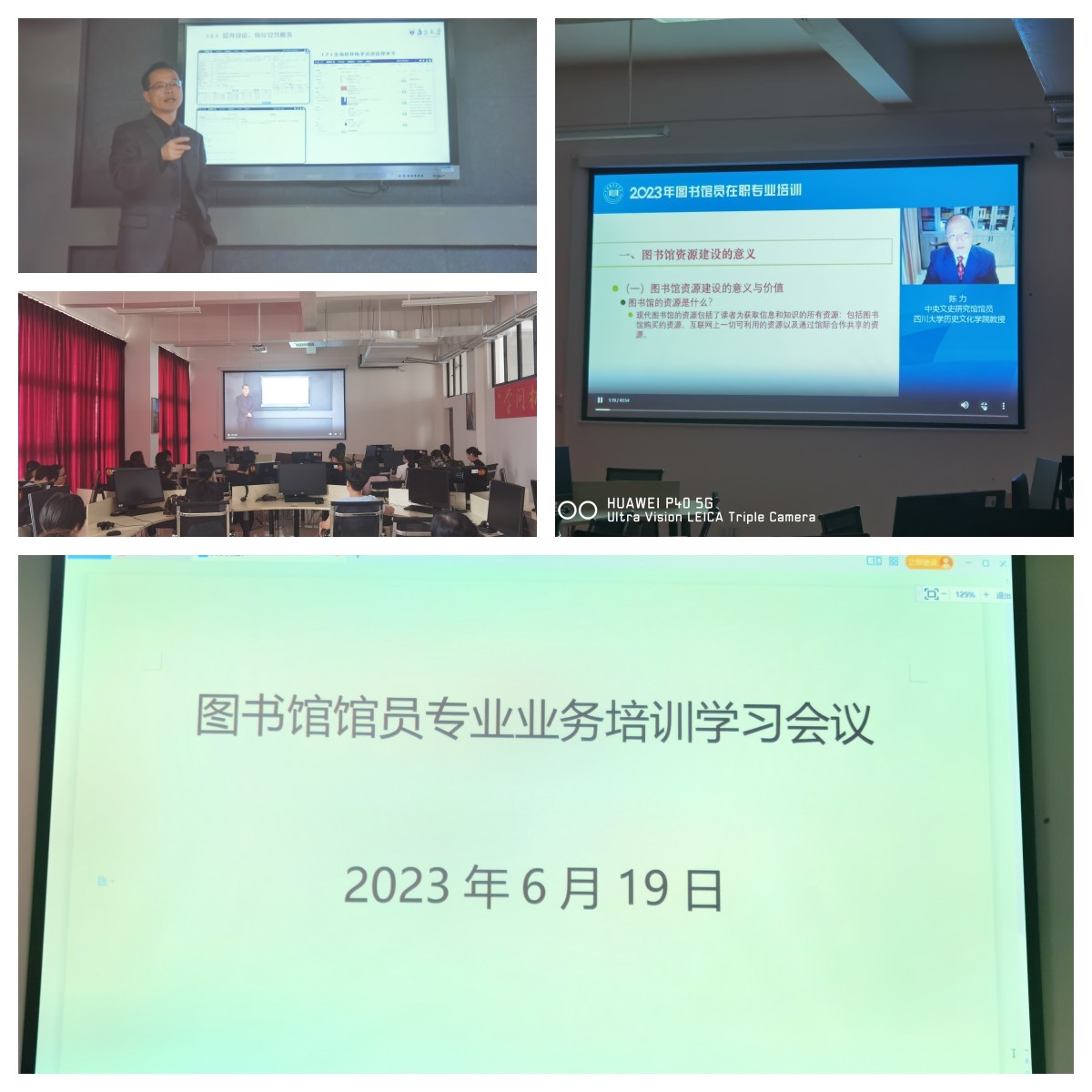 2023年6月19日上午8:30,图书馆在电子阅览室开展馆员专业业务培训学习,全体工作人员参加会议。培训分两场:上午观看邵波老师主讲的智慧图书馆的发展与建设,下午观看由四川大学孙力老师主讲的图书馆资源建设,旨在通过馆员专业业务培训,不断提高我馆工作人员的专业知识素养、业务技能,以适应未来图书馆智能化的工作需求。(张新玲摄)