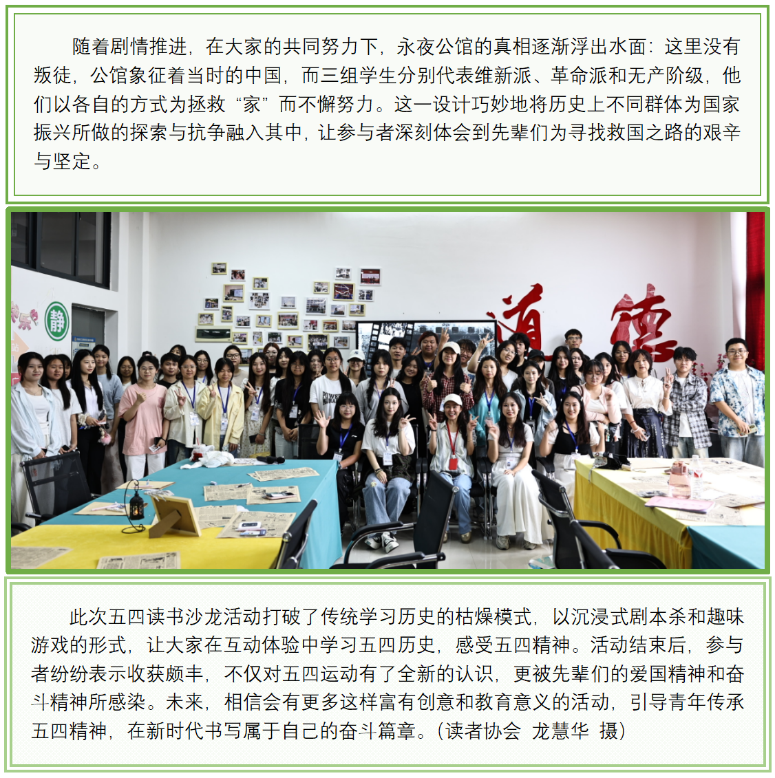 图书馆举办“沉浸式体验,回溯百年风云”五四青年节主题读书沙龙活动