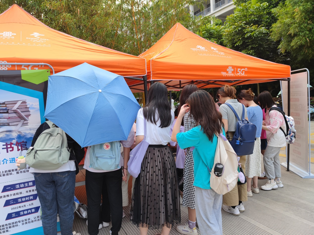2022年4月12日,我校图书馆举办的“畅读阅读 弘扬文明 美溢校园”系列阅读推广活动开始了,活动在东校区图书馆、西校区图书馆门口同时启动。