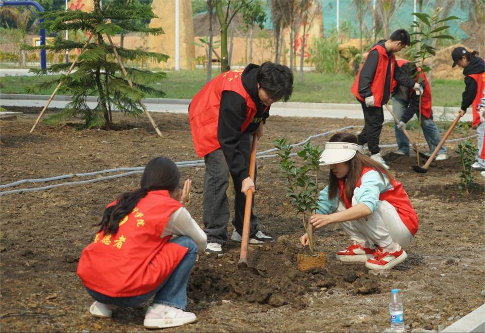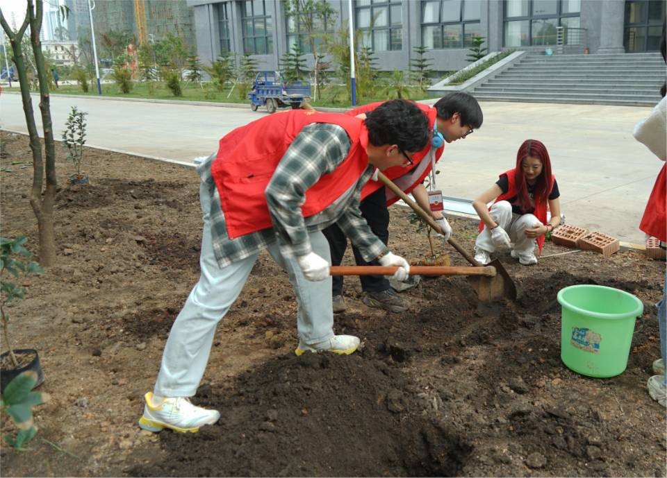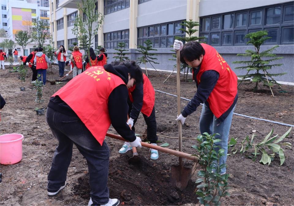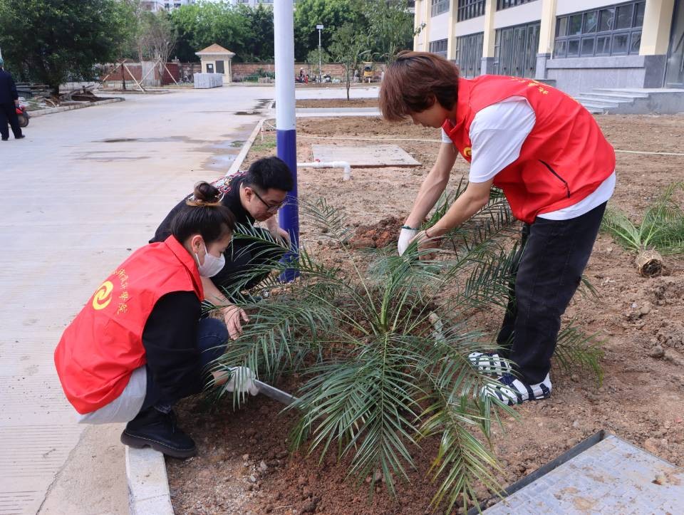 志愿者们植树的背影组成了校园中一道靓丽的风景线,一棵棵小树苗被栽下,南校区被一点点新绿缀满,同学们也在植树的过程中了解到许多有关树木的知识,认识到树木对于环境的重要。 此次活动,我校师生以实际行动践行“绿水青山就是金山银山”的理念,为推进北海市创建文明城市工作贡献自己的一份力量。同时,充分发挥了团结协作、吃苦耐劳的精神,弘扬了志愿者“奉献、友爱、互助、进步”的精神。 溢一缕春光,种一丝新绿,换一片希望,在这阳春三月里,一起来种棵树吧!(林修竹、黄韵露/摄)