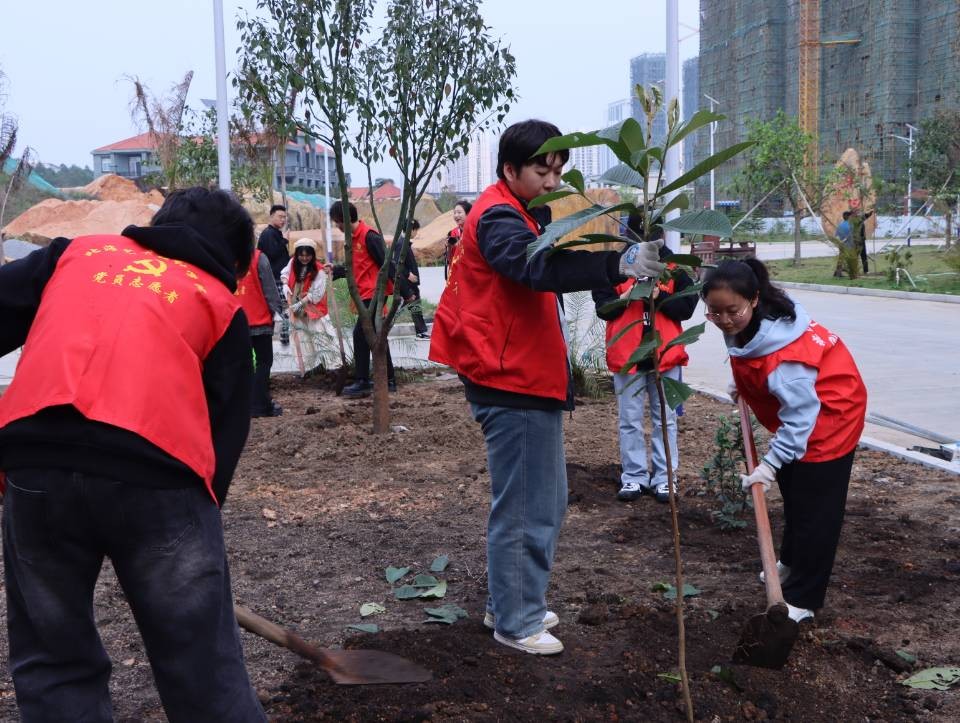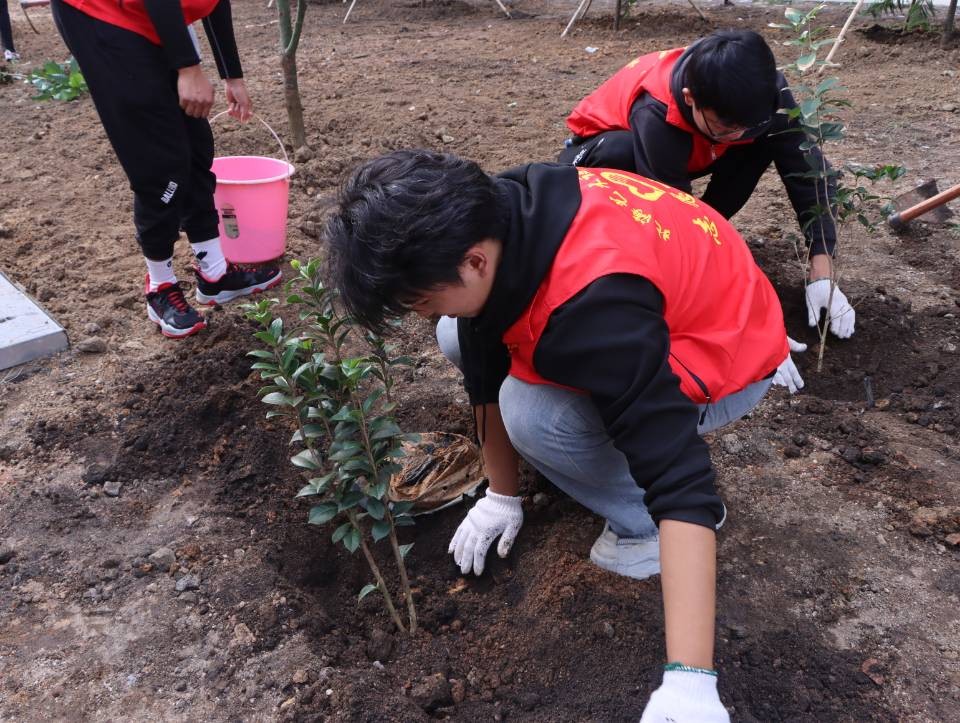 为深入贯彻习近平总书记重要讲话精神,牢固树立绿水青山就是金山银山的理念,增强全校师生的环境保护意识,同时美化校园环境,3月12日下午,我校团委在南区开展“志愿我先行,共栽青年林”植树活动,活动共有50余名师生志愿者代表参加,用行动播种绿色,美化环境。