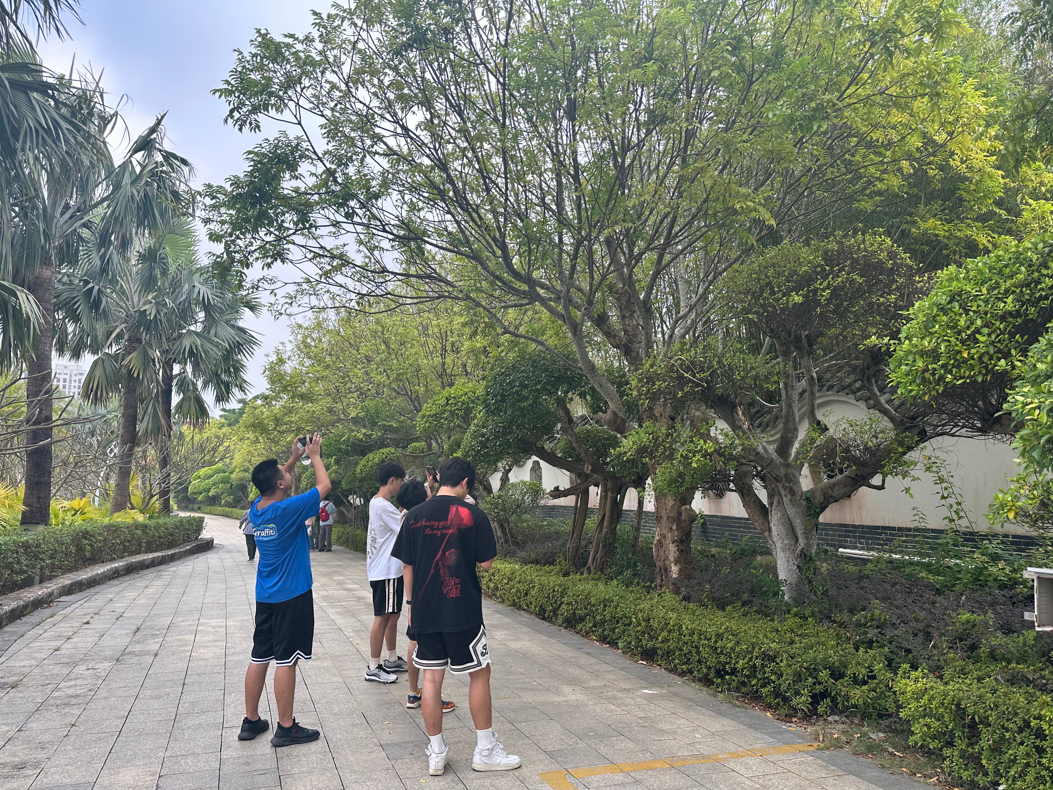 教师带领学生有序的乘坐大巴车抵达北海园博园校区的实践基地,进入园博园后,由教师示范如何进行植物识别,并且明确了调研目的,对植物调研提出要求,要求学生按照乔木、灌木、藤本、草本分类进行植物调研,在调研过程中,对调研植物进行拍照记录,细致观察植物的根、茎、叶、花、果实、种子的形态特点等,并做好相关记录。在实践的过程中,学生们不仅可以了解植物的形态特征、科属、分布规律、主要用途及经济价值,同时也可以培养学生对大自然的热爱,增强学生保护环境和珍惜植物资源的意识。