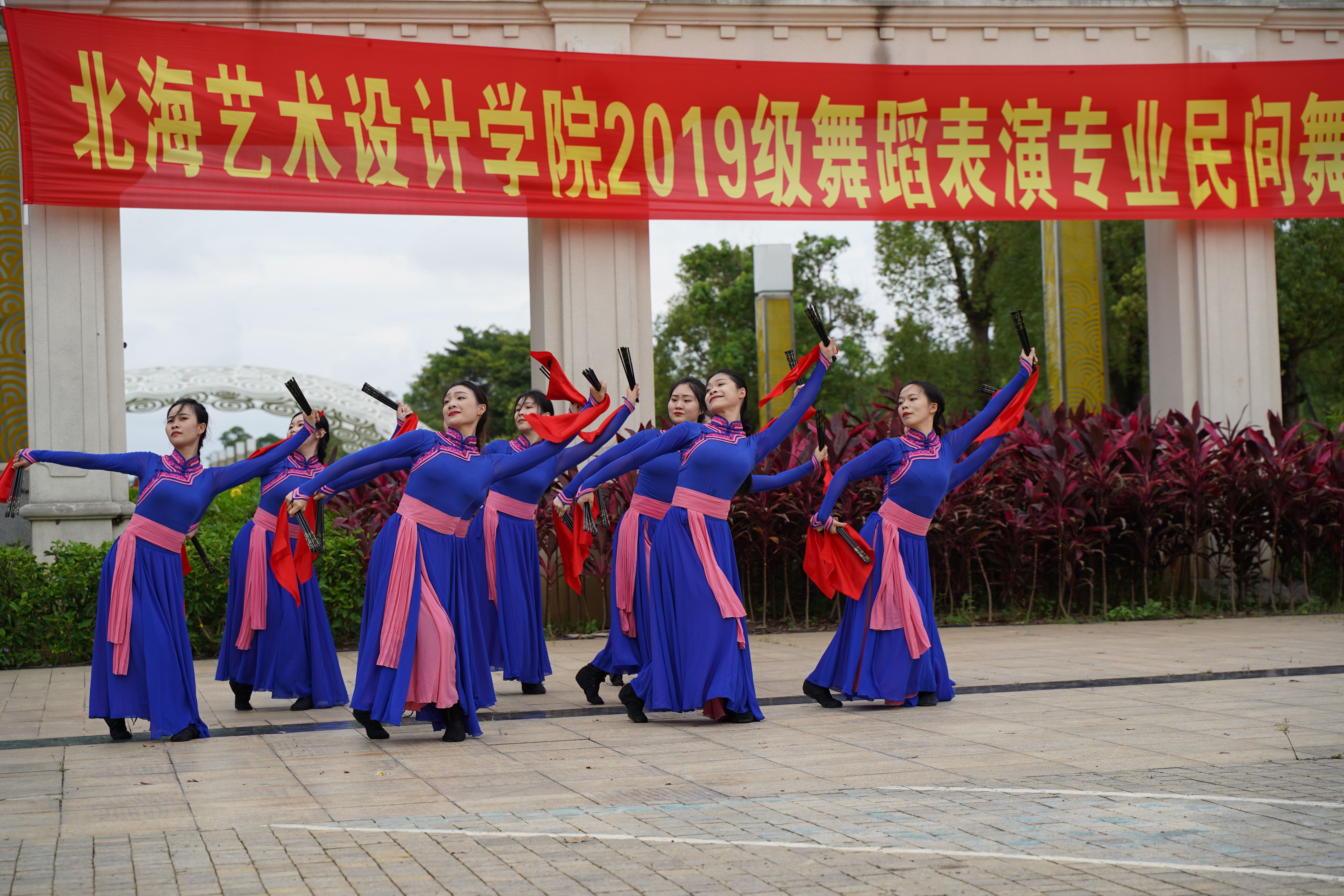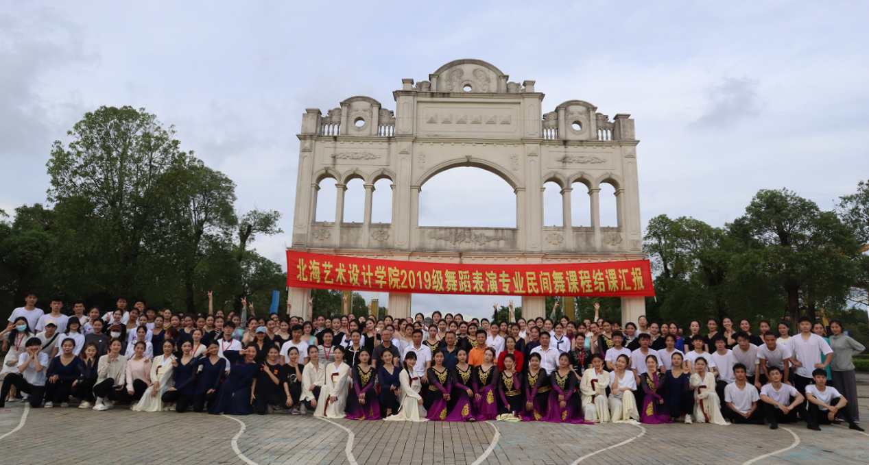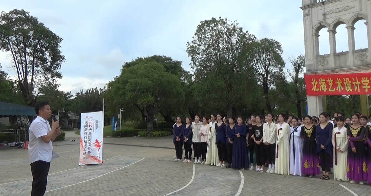 2022年6月9日,北海艺术设计学院人文教育学院2019级舞蹈全体表演专业民族民间舞课程结业汇报演出在园博园区举行北海艺术设计学院副校长王斌、陶立阳,人文教育学院院院长熊秀峰、副院长李谦,舞蹈表演专业杨建中、殷强教授等观看了演出。