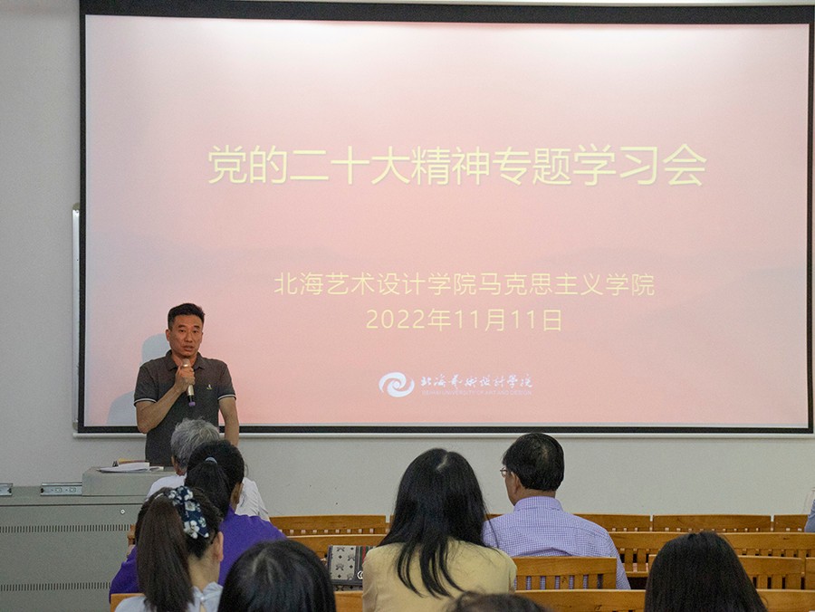 在专题学习活动上,马克思主义学院院长姜献生教授以新思想引领航向,新征程开辟新篇章为主题,从党的二十大的重要意义、重要内容等进行了专题学习。他指出,习近平总书记所作的二十大报告是马克思主义中国化时代化的最新成果,具有很强的思想性、理论性、战略性、指导性要求,大家要提高政治站位,深刻领会党的二十大精神的思想内涵和核心要义,要把学习贯彻党的二十大精神作为当前及今后一个时期的首要工作任务,做到学深学透、学思践悟,推动党的二十大精神融入课堂教学中,以教学促科研,以科研促教学,从而推动教育教学工作和科研水平不断提升。
