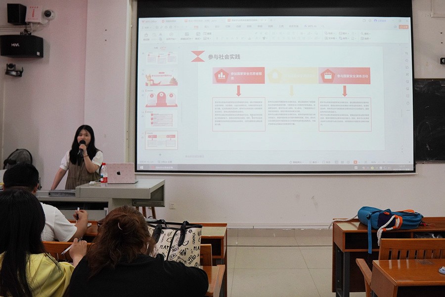随后,全体同学集体观看国家安全教育宣传片。通过案例,同学们深刻认识到国家安全的重要性以及与个人生活的紧密联系。国家安全是国家生存和发展的基石,作为新时代的大学生,更要自觉增强国家安全意识,从自身做起,从小事做起,共同维护国家安全。