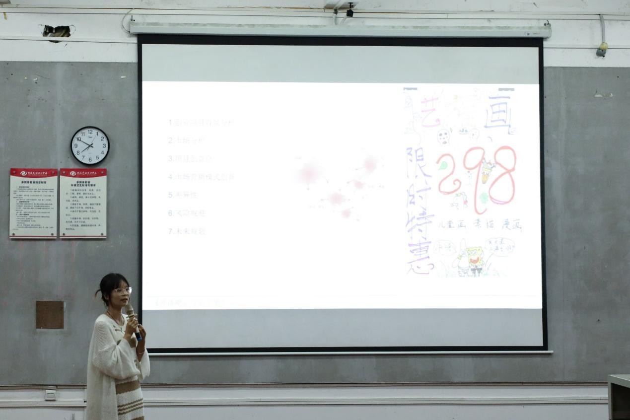 接着,林珍娴同学又从专业知识、学习经验两方面与同学们做了分享。她指出环境设计的中心思想,即协调“人—建筑—环境”的相互关系,使其和谐统一,形成完整、美好、舒适宜人的人类活动空间。她鼓励同学们树立正确的学习态度,发现自身存在的问题,找到适合自己的学习方法。
