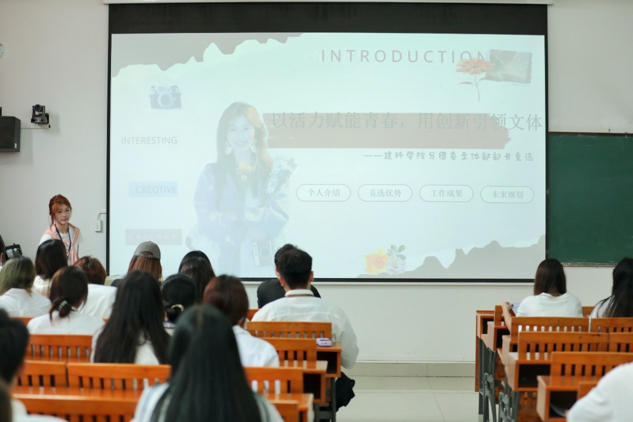 在竞选演讲环节,干事依次登台,围绕个人优势、工作经验、对竞选部门的认知以及未来工作规划等方面展开精彩演讲。他们或慷慨激昂,表达对分团委学生会工作的热爱与坚守;或娓娓道来,分享过往工作中的收获与成长。每一份竞选宣言都饱含着对学生会发展的热忱与担当,展现出新时代青年积极向上、勇于挑战的精神风貌。