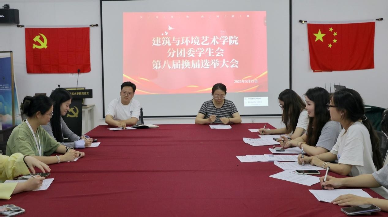 2025年5月23日下午,北海艺术设计学院建筑与环境艺术学院分团委学生会主席换届选举在公德楼507教室举行。本次换届选举旨在选拔出具有卓越领导能力、高度责任心的新一届学生会部门主席,为学生会注入新的活力,推动学生会工作迈向新台阶。建筑与环境艺术学院分团委书记赵晓盼老师、分团委副书记陈宣辰老师、与各部门主席参与了本次竞选。
