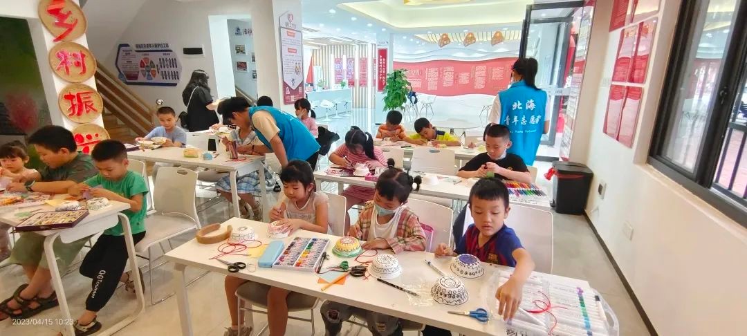 北海艺术设计学院始终围绕立德树人这一根本任务,大力培育学生志愿者服务精神和社会实践能力。2023年4月1日至4月15日,校团委青年志愿者协会在侨南社区开展了“传承铜鼓技艺,弘扬传统文化”支教进社区活动。