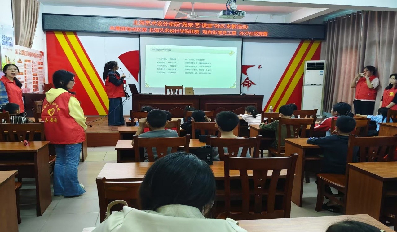 为贯彻落实习近平总书记关于深入开展学雷锋活动重要指示精神,进一步弘扬“奉献、友爱、互助、进步”的志愿者精神,传递温暖力量,营造校社互助友爱氛围,3月15日,我校“周末‘艺’课堂”社区支教活动启动仪式在外沙社区举行。出席本次活动的领导有海角街道党群工作部部长罗莹、外沙社区党委书记吴平英、我校团委副书记杨美琪,共有师生代表、支教志愿者、社区儿童及家长等50余人参与。
