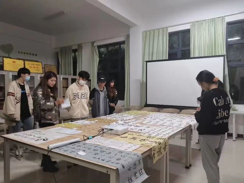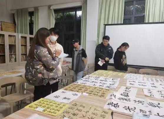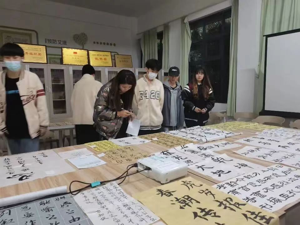 老师们相互交流,仔细品读作品并为本次活动最终评选出届时参加活动的志愿者。 此次活动,为有书法爱好的大学生提供一个展示自我及交流的平台,不仅是对中华民族传统民俗文化的传承,也是对青少年精神文明素养的一种提升。