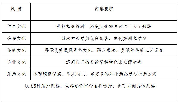 (2)寝室风格设计:各参赛寝室须确定自己寝室的风格。