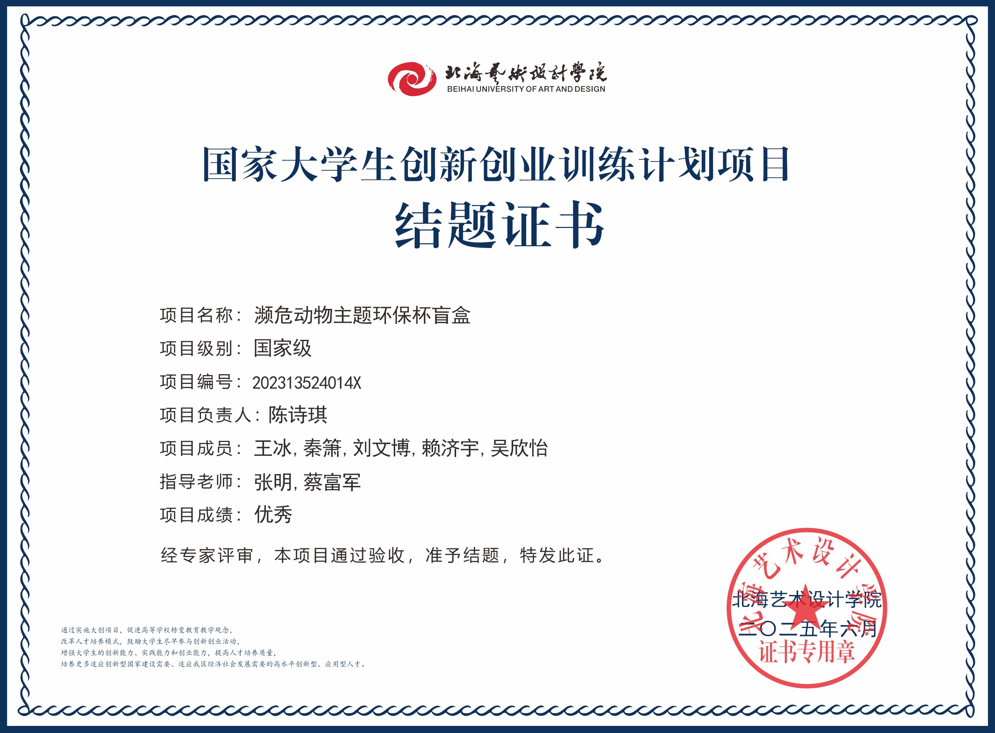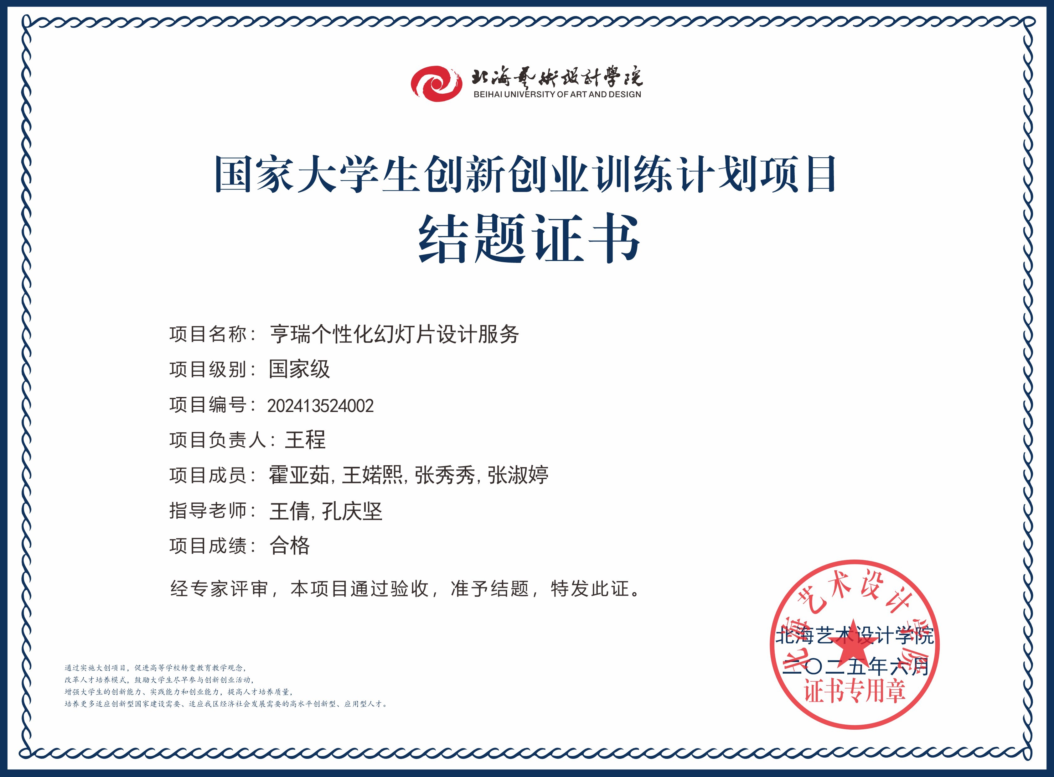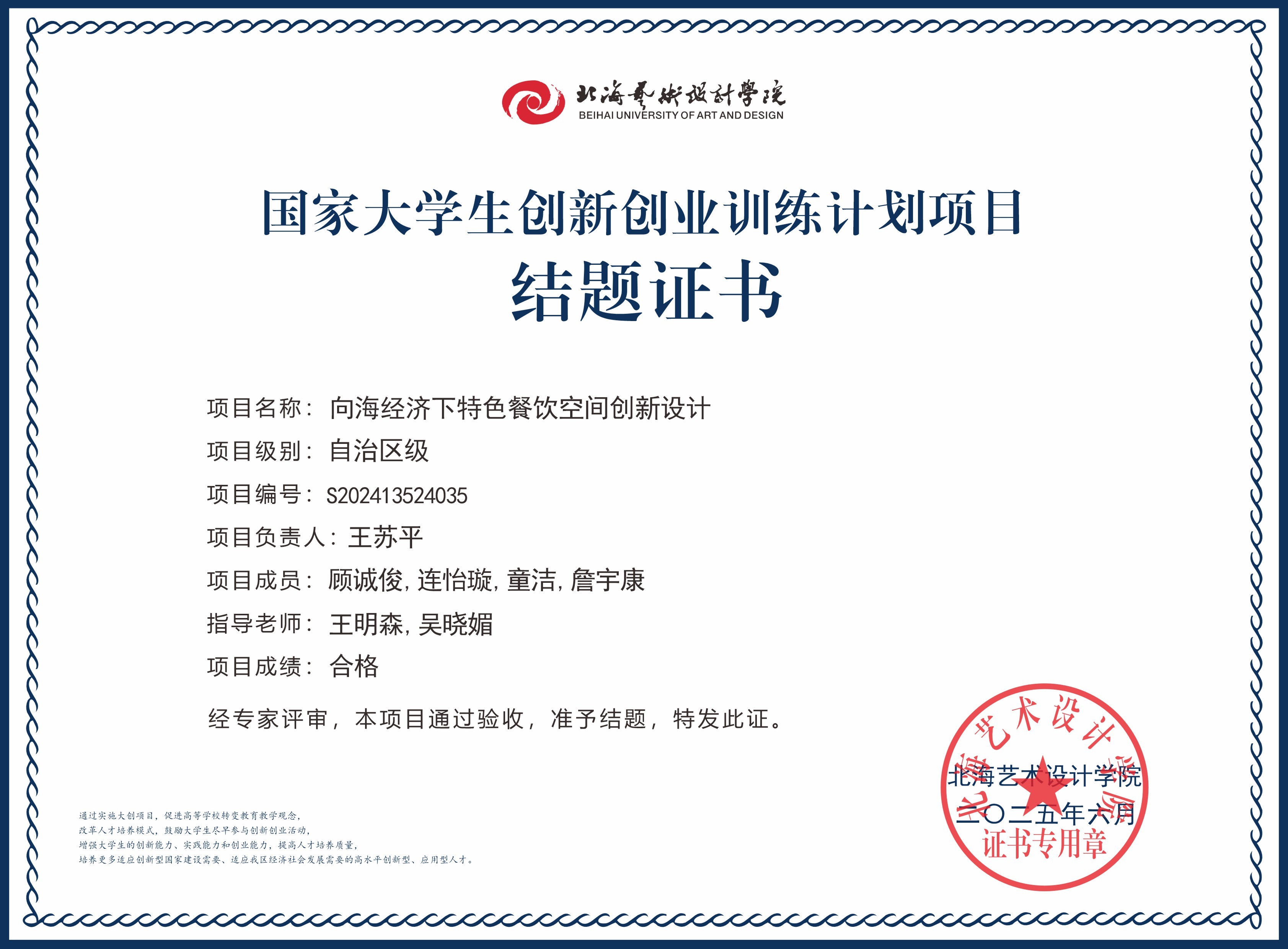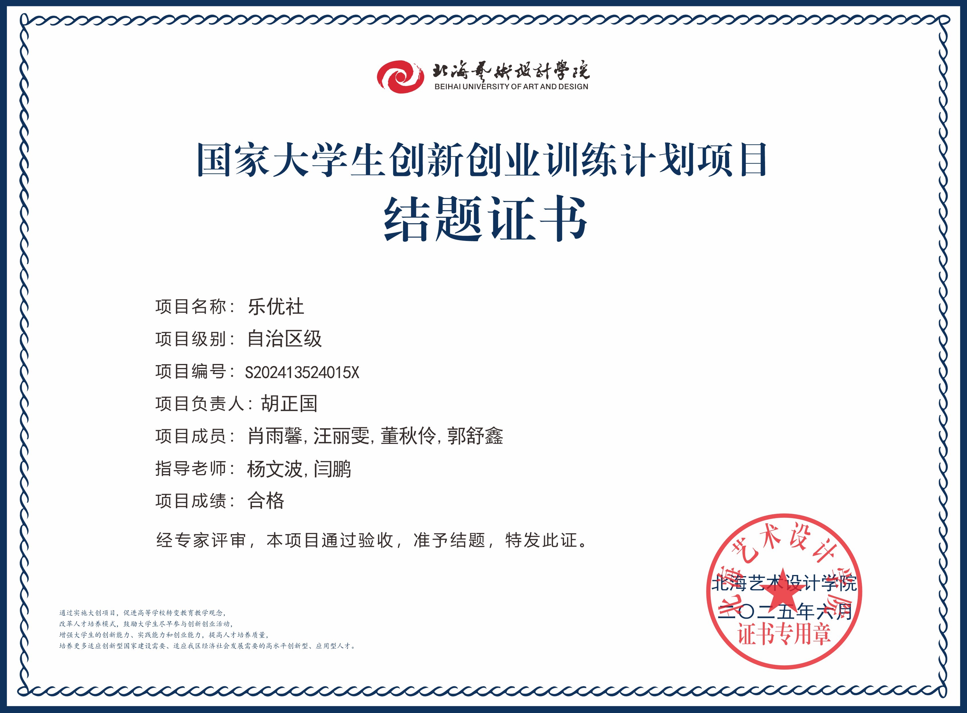 2025年大创项目结题证书(国家级区级)