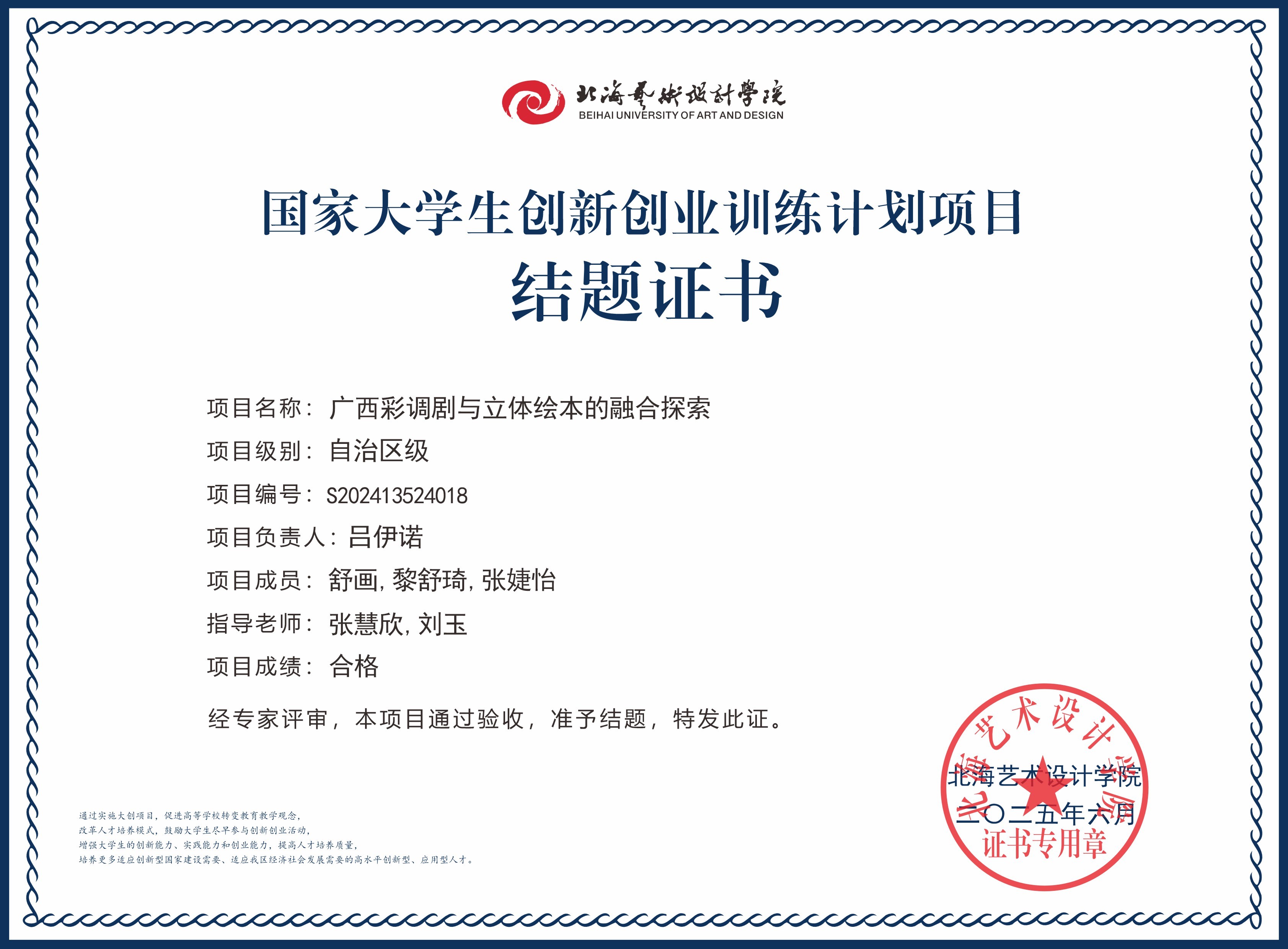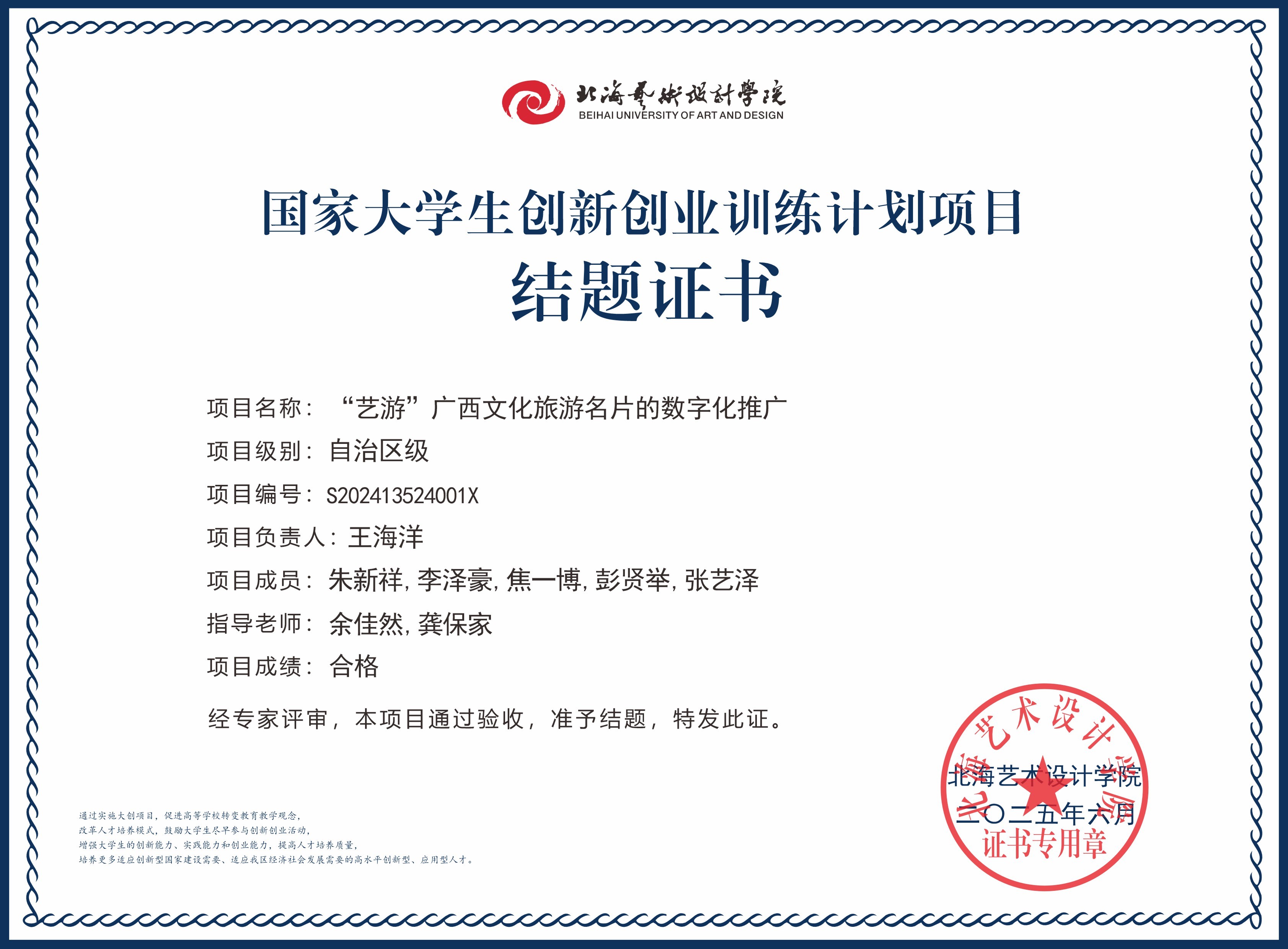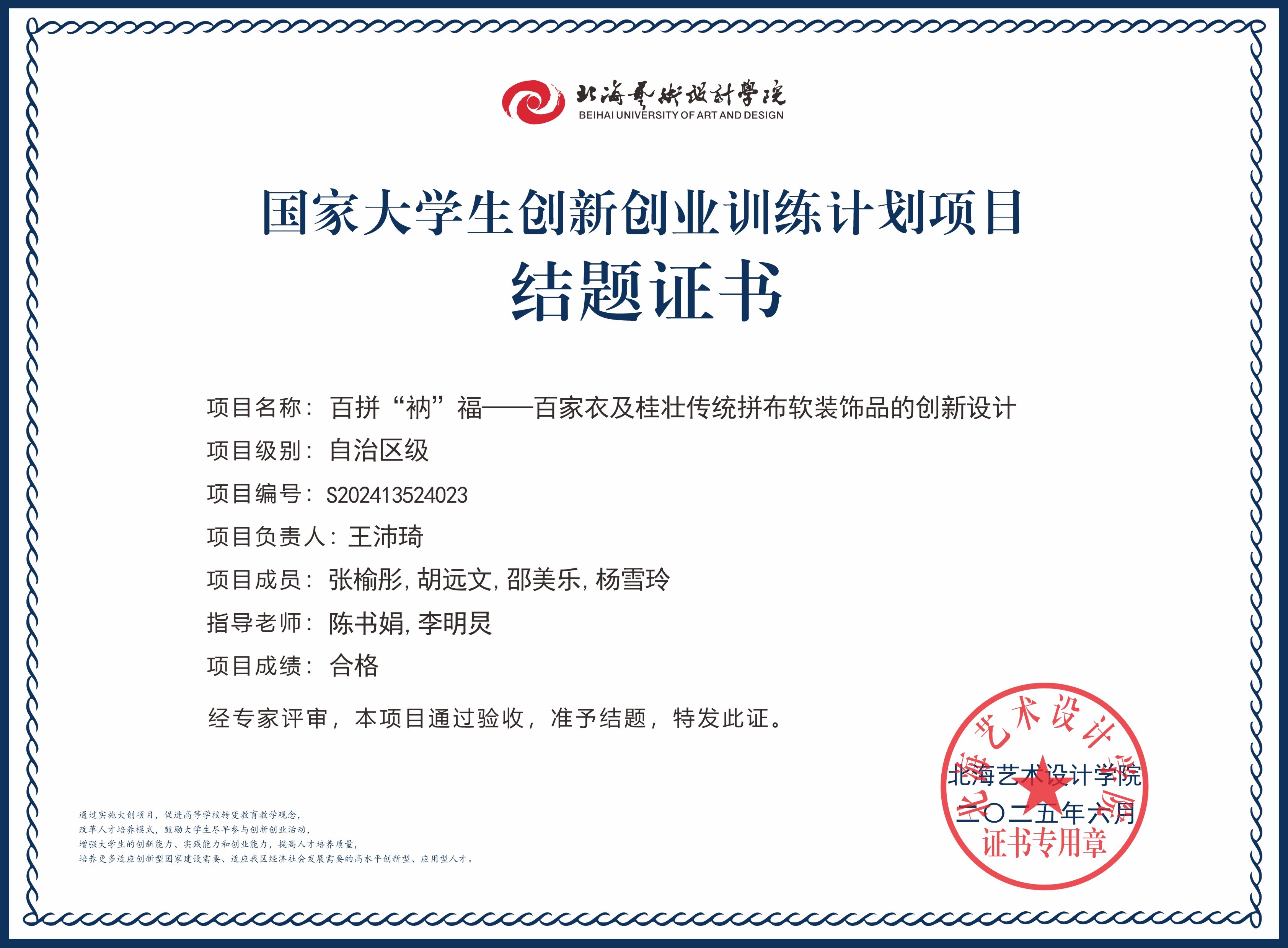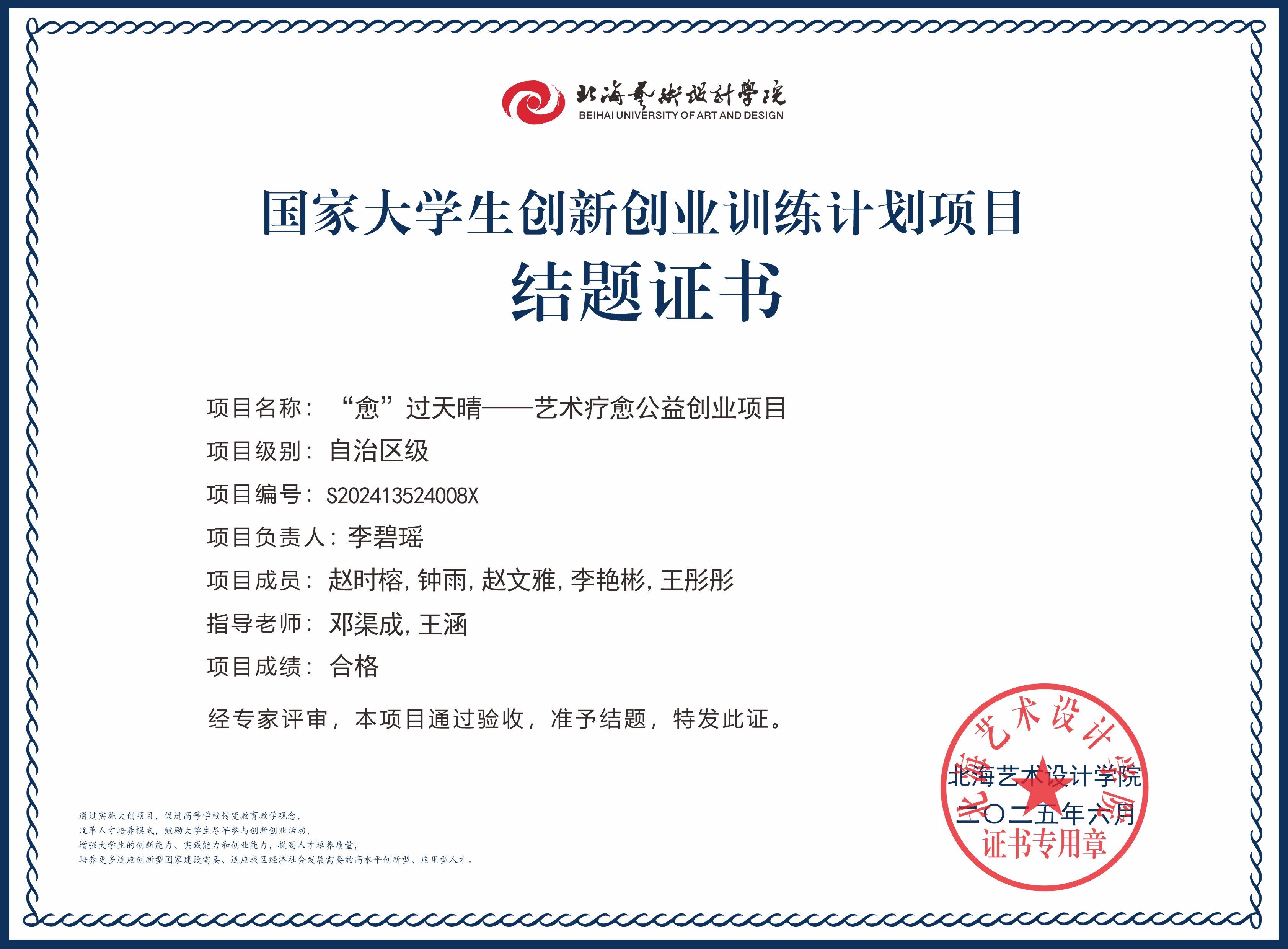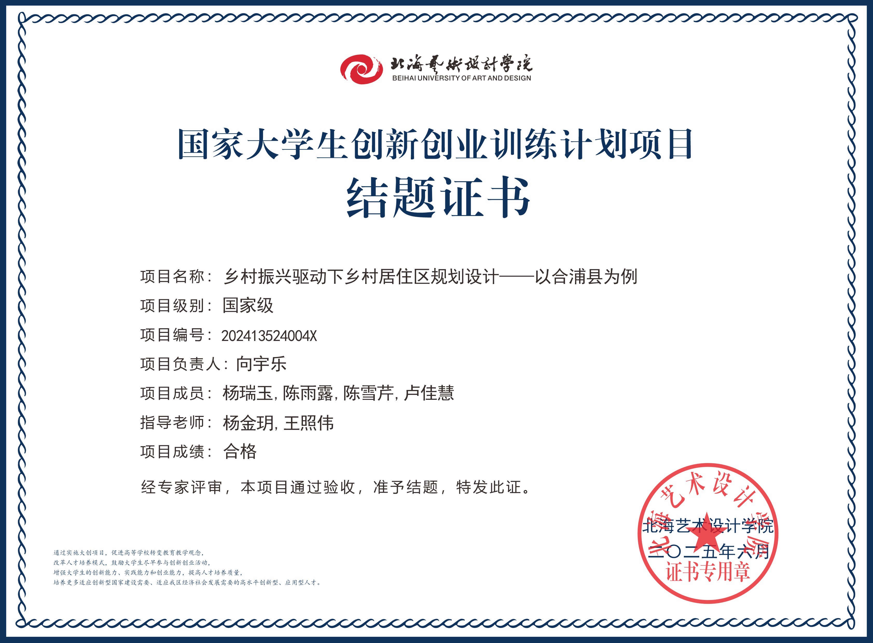 2025年大创项目结题证书(国家级区级)