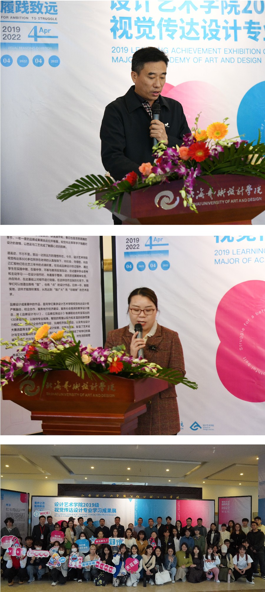 2022年4月19日,设计艺术学院视觉传达设计专业学习成果汇报展在图书馆一楼开幕。校党委副书记韦静月、副校长陶立阳、副校长黄侃明、设计艺术学院党总支书记黄锦、院长李林平、副院长白建强等领导应邀出席开幕式。