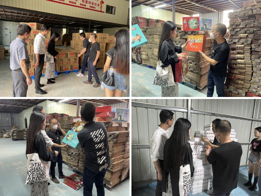 在公司总经理劳祯贤、廖烈雄的带领和陪同下,师生们参观了公司食品生产线,考察了公司现有的运输包装与礼盒包装,双方就目前正在开展的包装设计委托项目展开讨论并交换了意见。