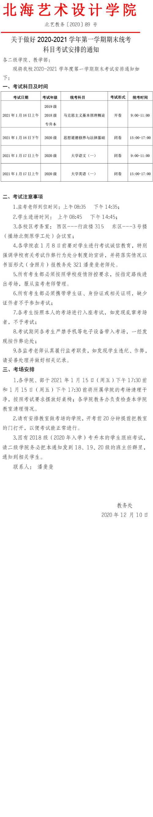 关于做好2020-2021学年第一学期期末统考科目考试安排的通知