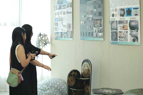 课程负责人郭蕙静在介绍中指出,《家具设计》作为创新创业必修课,引导学生以广西地域文化为土壤,深入挖掘壮锦纹案、侗族榫卯等非遗技艺基因。学生通过对旧家具、旧材料的再造,将传统文化符号融入现代审美与实用功能,创作出96件蕴含“可持续”理念的实体家具作品。现场通过家具实物与创作展板,立体呈现了从文化解码到材料再生的完整历程。