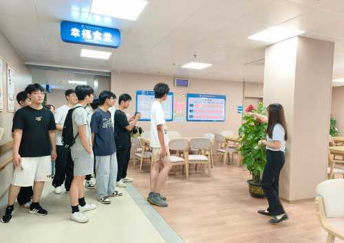 在北海康养中心工作人员的全程引导下,师生团队首先系统了解中心“医养结合+智慧化”的核心运营模式,随后深入走访公共活动区、康复理疗室、无障碍卫生间及适老化居住单元等关键功能空间。调研过程中,中心的特色设计细节引发师生热烈讨论:健康监测设备与墙面的一体化布局、紧急呼叫系统的隐蔽式安装、可按需调节的室内温湿度控制系统,均将技术关怀巧妙融入空间设计,既保障实用性又兼顾美观度,为师生提供了极具参考价值的实践样本。学生们通过亲手触摸防滑扶手、现场体验康复器械操作,将课堂上“安全优先、以人为本”的理论原则转化为具象认知,进一步加深了对人机工程学在适老化场景中应用的理解。