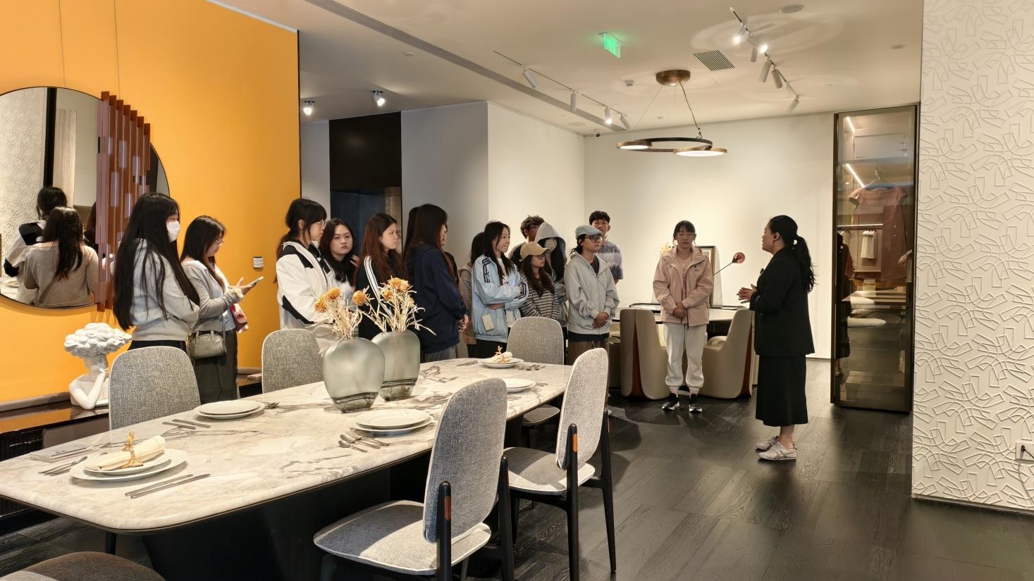 学生反馈积极:参与学生表示课程“实用性强、收获满满”,不仅破解了课堂理论的抽象难题,更明晰了职业方向。有学生称“郭瑞老师的案例让项目管理核心变清晰”,也有学生提及“克拉斯家居实践打破了对顶奢设计的片面认知,具象化的质感体验为后续工作提供支撑”。