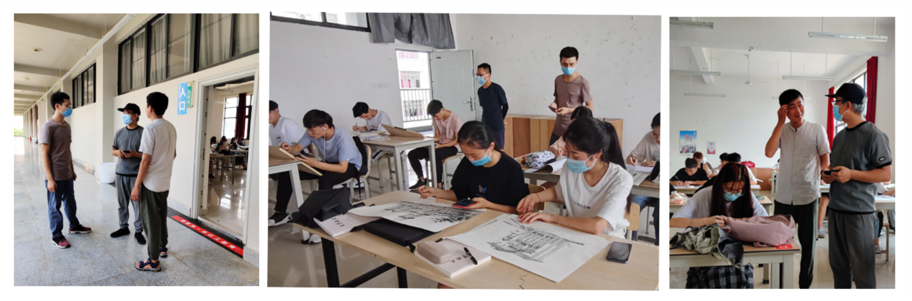 在疫情期间《空间构成》和《专业制图》课程主要采取的线上教学,巡查主要以教研室主任、副主任和主课教师不定期进群听课的方式进行,以抽查教师线上教学基本情况;《手绘表现技法》课程采取的是线上听课和实地巡查的相结合的方式进行。