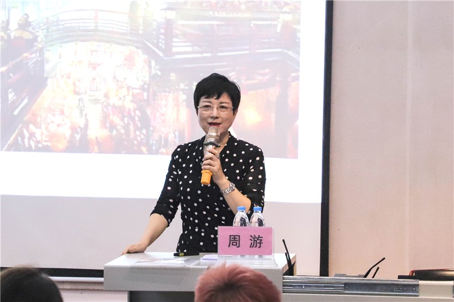 周游教授以边塞诗为例,讲述环境也是感情的一种表现,边塞诗人的爱国情怀值得赞颂,希望同学们尊重历史,将军魂、爱国之情融入心中,认真领悟诗魂,了解作品精神。以情发音。