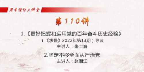 周末理论大讲堂|第110讲:《更好把握和运用党的百年奋斗历史经验》、坚定不移全面从严治党