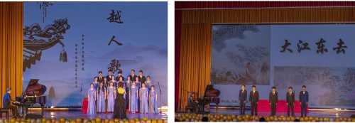 “山有木兮木有枝,心悦君兮君不知”,一首意境优美、荡人心绪的《越人歌》,拉开了此次演出的序幕。《大江东去》男生合唱,曲调淳朴、气息宽广,格调舒展、气韵潇洒。