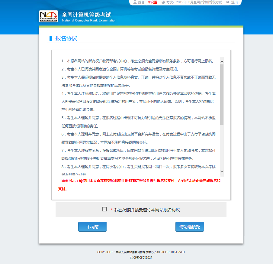 (一)注意:注册是在通行证管理网站进行的,不是NCRE的报名网站。注册完毕后,需要通过浏览器的后退功能或者地址栏输入地方的方式返回到NCRE报名入口。