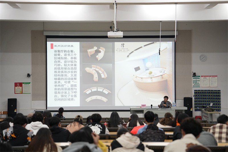 讲座最后,海建华教授指出在各类案例学习中,大家要学会分析优缺点,在做室内设计前,主题的选择要尽可能宽泛,做好自我构思,准确把握室内设计的本质特点和几何语言的运用,从而做出更好的设计作品。(王弘武、姜添耀/摄)
