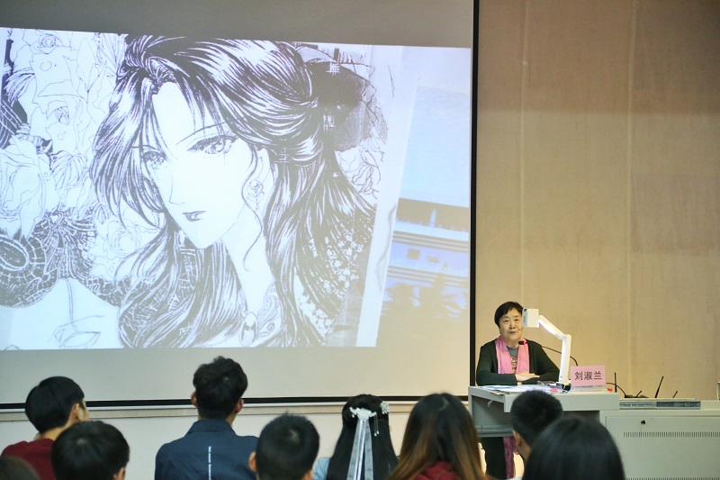 讲座开始前,刘淑兰教授告诉大家一个人要从事自己所热爱的事业,在这过程中没有年龄的局限也没有累与不累的限制,以幽默风趣的讲话方式赢得同学们掌声连连。随后刘淑兰教授分享了自己的一些“作业”给同学们欣赏,分享了自己平时在创作的过程中享受“艺术”的感受,并鼓励同学们认真学习,坚持自己的选择。