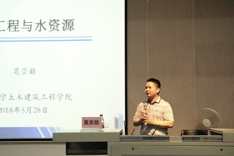 2018年5月28日20:00于我校西校区伦理楼107,来自广西大学土木建筑工程学院博士生导师莫崇勋教授,为我校师生带来一场题为《水利工程与水资源的关系》的精彩讲座,广大师生现场聆听讲座。