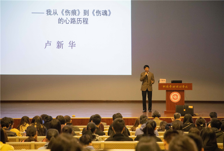 卢教授谈到其代表作《伤痕》的创作经历时说,自己在部队服役期间有幸阅读了那些影响他文学创作的经典名著,由此开启了自己的创作之路。他认为自古以来,一切经过时间检验的文字才能永恒地启迪人的心灵。卢教授强调,仅仅读“有字之书”是远远不够的,应该把读有字之书、无字之书、心灵之书融合起来,认真践行“行知合一”。