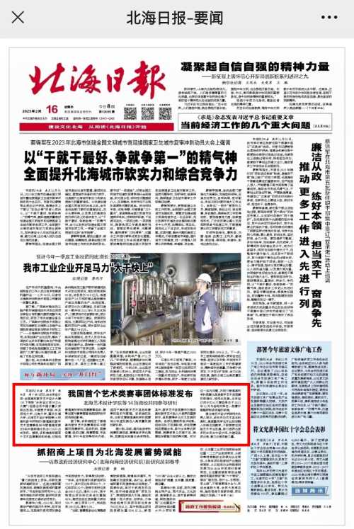北海日报:我国首个艺术类赛事团体标准发布——北海艺术设计学院等14所高校共同参与研制