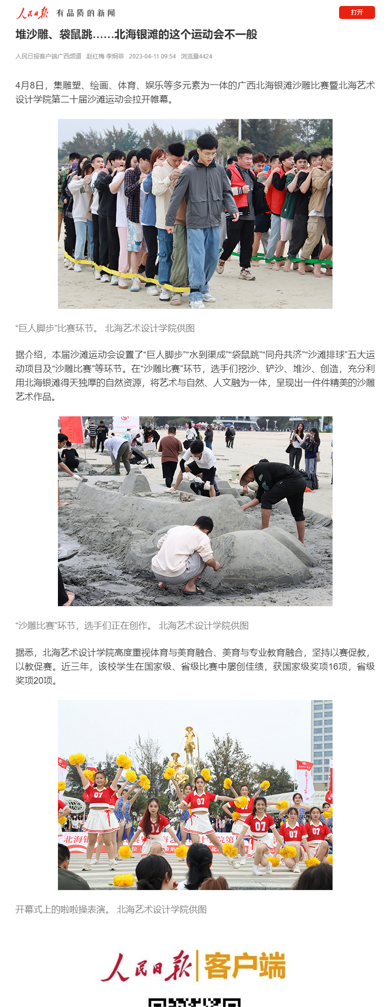 人民日报客户端报道我校沙滩运动会暨沙雕大赛实况