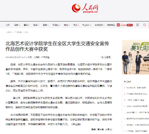人民网:北海艺术设计学院学生在全区大学生交通安全宣传作品创作大赛中获奖