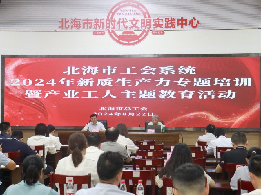 8月22日,北海市工会系统2024年新质生产力专题培训暨产业工人主题教育活动在市职工大讲堂举行。市总工会党组书记、常务副主席赵太峰主持,市总工会专职副主席、党组成员陈东辉参加活动。北海“双进”活动讲师团成员、我院院长姜献生教授应邀做了专题培训,现场来自北海市劳模、工匠代表、产改试点企业以及工会系统的干部职工代表共百余人参与培训。