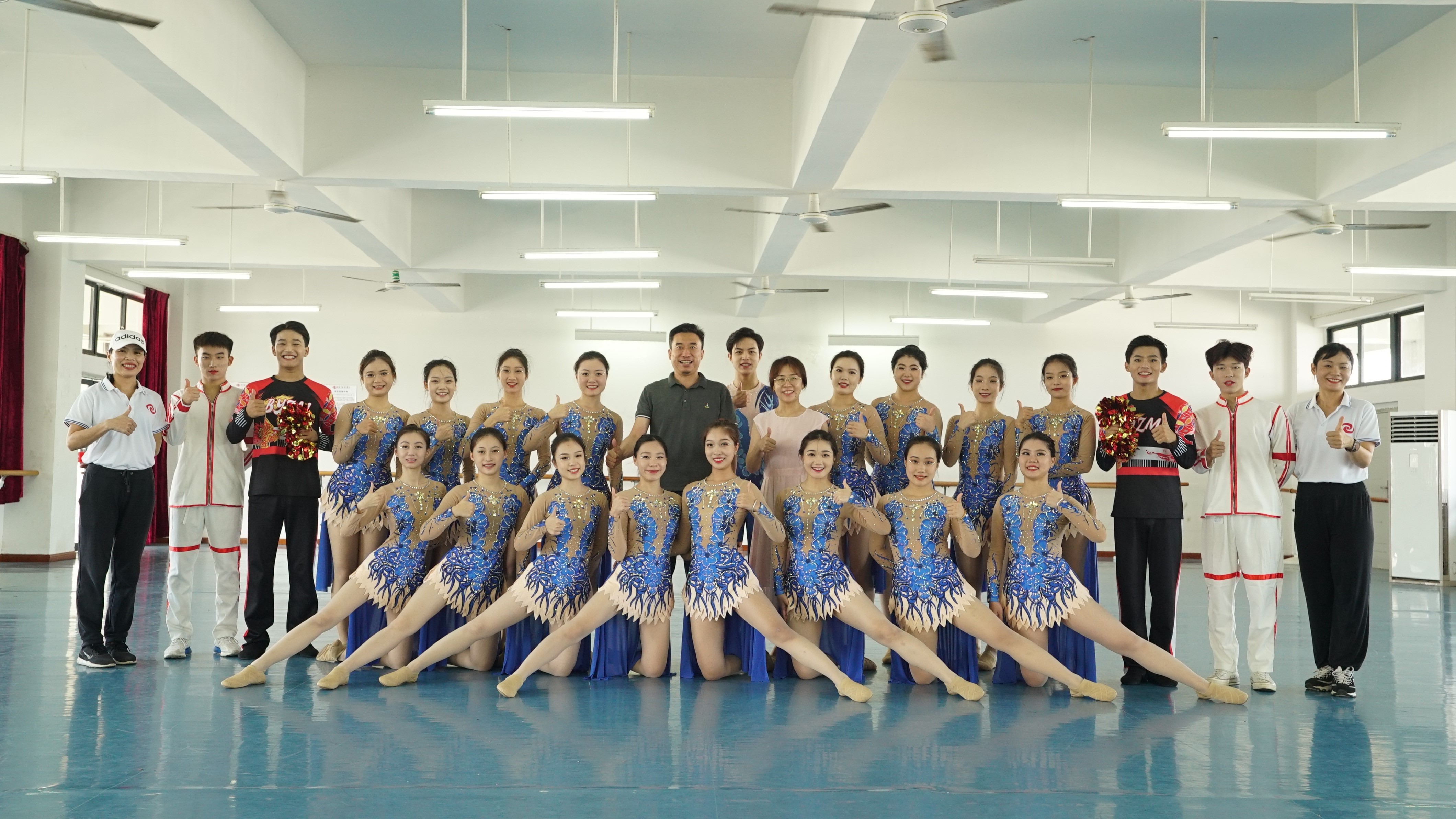 校啦啦操队自组建以来,得到了学校、学院的大力支持。比赛视频录制当天,学校副校长陶立阳、体育部部长杨莹亲临现场为同学们加油、打气,希望同学们发扬顽强拼搏的精神,在比赛中展示出北艺学子积极向上、青春飞扬的风采!