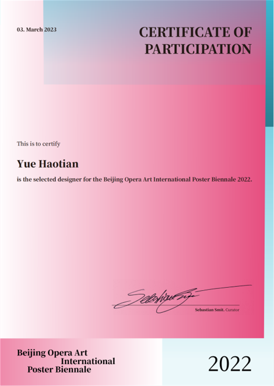 近日,2022首届京剧艺术国际海报双年展评审工作圆满收官,在此次展览作品征集中,我校设计艺术学院视觉传达设计专业2019级学生岳浩田、李耀桤的设计作品入围,作品于3月7日在波兰华沙Retroavangarda美术馆展出。