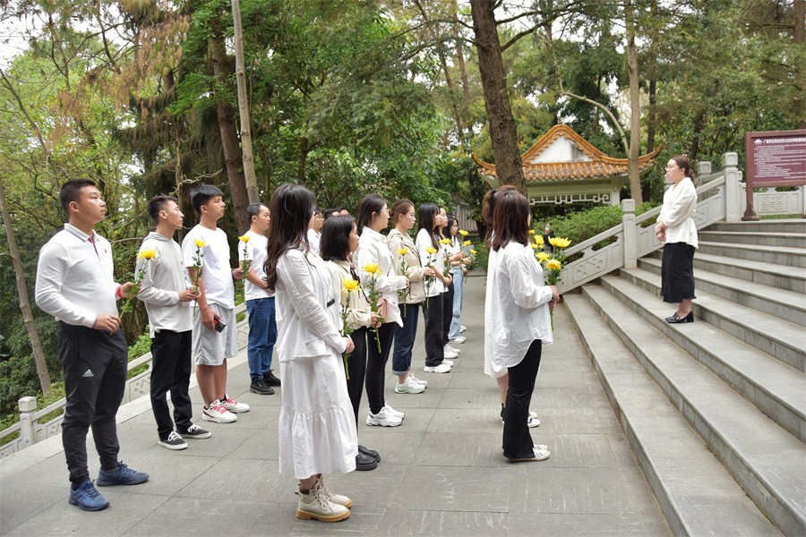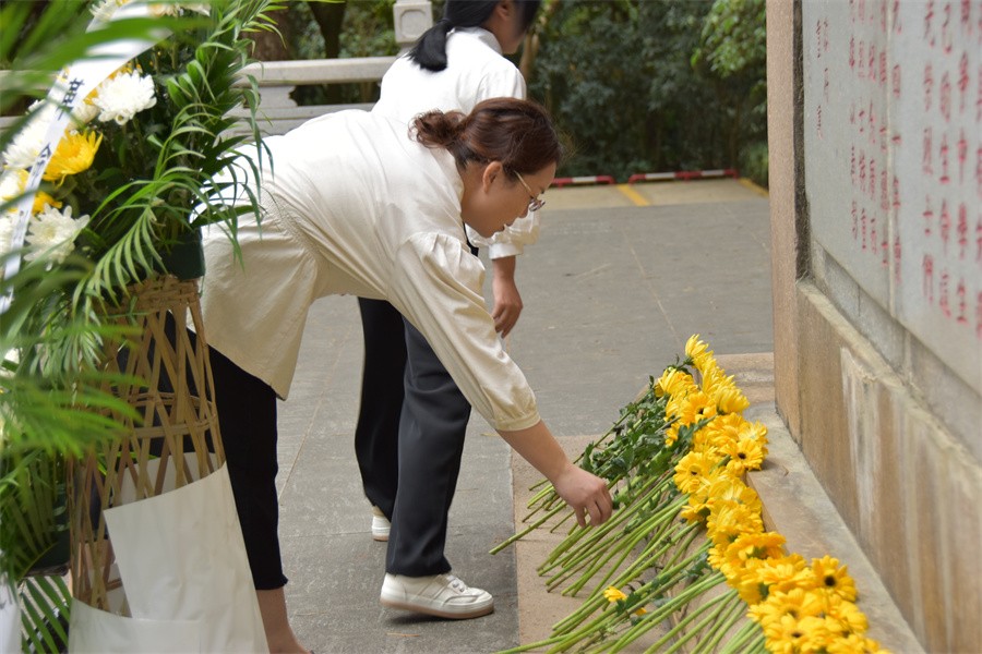 下午,全体人员来到青秀山广西学生军抗日烈士纪念碑,聆听广西学生军英勇故事,缅怀革命先烈丰功伟绩。现场,全体党员干部怀着崇敬的心情向革命烈士纪念碑三鞠躬,并向革命烈士敬献鲜花。