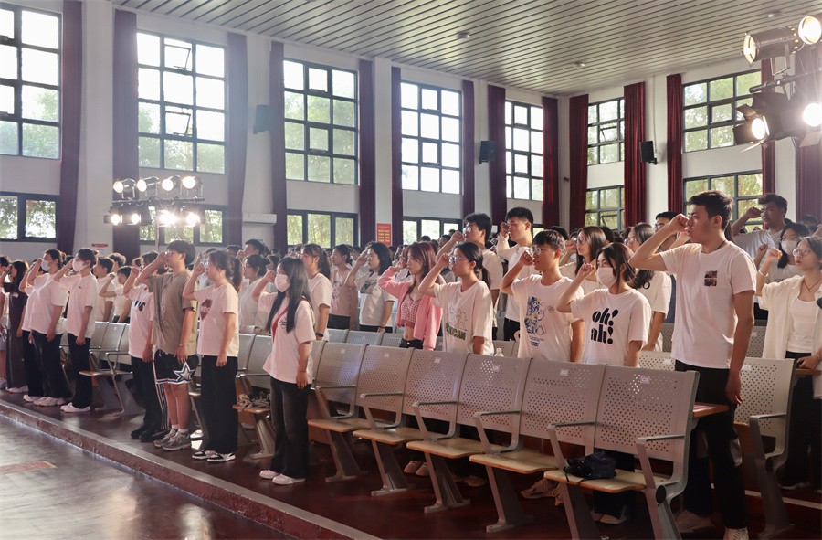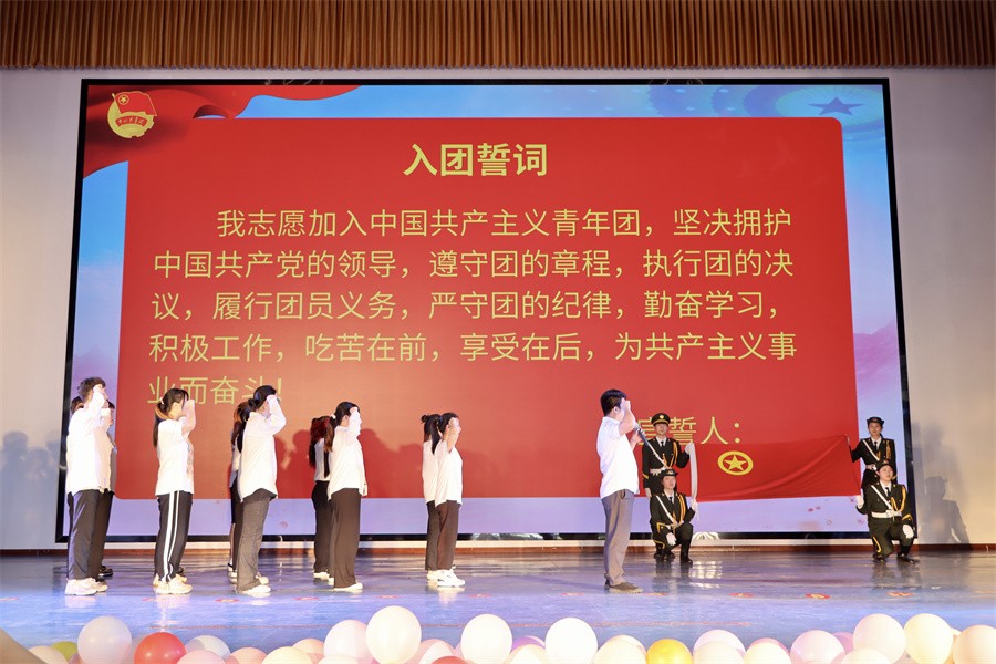团委书记唐良春同志带领新老团员进行入团宣誓仪式,铿锵有力的誓词在礼堂中久久回荡,这不仅仅是简单的誓言,更是砥砺奋斗的决心。希望每一位团员在未来能够不负胸前的那一枚团徽,成为一个忠于国家、忠于党、忠于人民的优秀团员。
