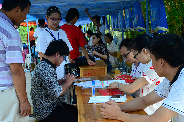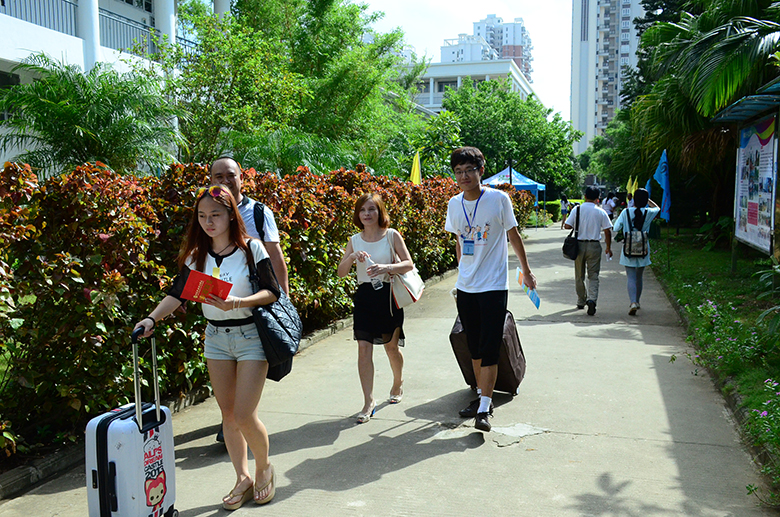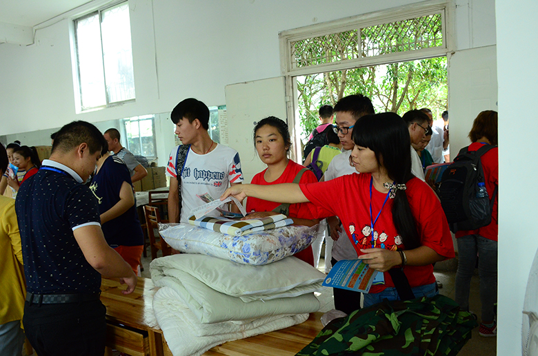 直到下午天空依然淅淅沥沥下雨,但这并没有减弱接待员们的热情,他们带领新生们办理入学手续、游览校园,并向他们介绍了各栋教学楼、图书馆、办公楼的分布和校内超市、饭堂、通信服务点等校园设施。学院领导高度重视迎新工作,深入接待现场、学生宿舍、食堂慰问新生,第一时间了解他们入校后的生活状态,及时帮他们解决生活上的困难,给新生带去了家人般的温暖。
