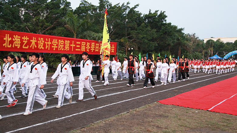 2014年12月9日上午8时,我院第十三届冬季田径运动会开幕式隆重举行。学院党委书记贺祖祯、常务副院长张建虹、副院长张跃、副院长林秀琪、副院长彭仁、设计学院常务副院长胡胜、动画学院常务副院长陶立阳及各职能部门负责人出席开幕式。