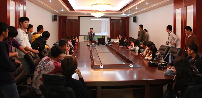 其中,校企合作单位广西阔迩登传媒文化有限公司陈子雄总经理,在会议室给同学们介绍了国内动画产业的现状及前景,并对同学们提出了宝贵的建议。告诉同学们,在这个新兴的行业中,兴趣和爱好是最直接的动力,只有通过不断的学习,不断的磨练才能到达艺术的高峰。他希望同学们能通过自己的努力和对动画、对艺术的热忱找到属于自己的一片广阔天空。