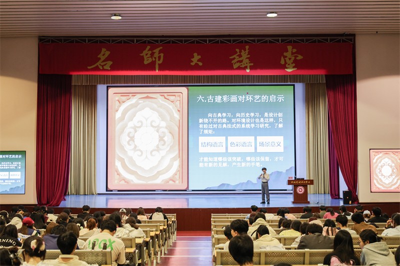 4月8日晚,北京建筑大学硕士生导师李沙教授莅临我校,在西校区大礼堂开展了题为《宋代建筑彩画艺术》的专题讲座,为我校师生深入解读宋代建筑彩画的艺术特征与文化内涵。