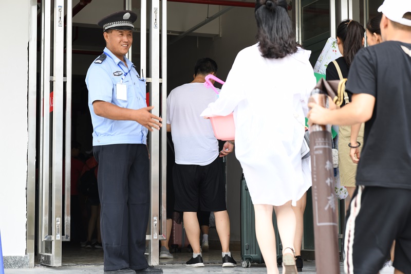 在新生接待过程中,校园安保人员在门卫处及校园各处进行巡逻,确保校园人流有序的进行,保障学校工作人员和新生的人身安全及财产安全,提防校外不法分子的进入,为校园安全做了有力的保障。校园宿管阿姨也为新生接待奉献出自己的一份力量,提早打扫干净宿舍环境,准备迎接新生入住。