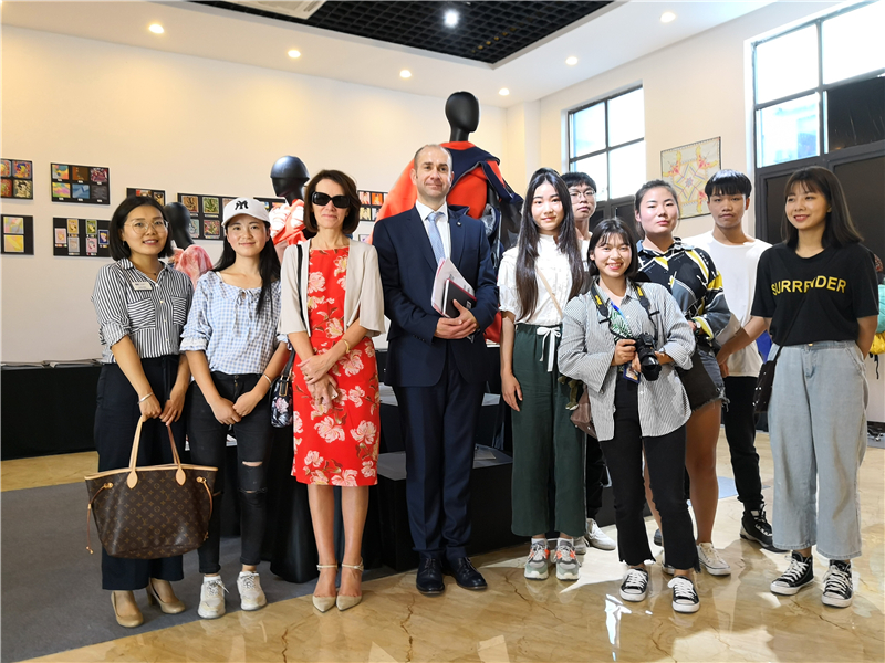 (德比大学校领导走进环艺学院基础课堂,对《异性偶像》课程教学表示赞赏)