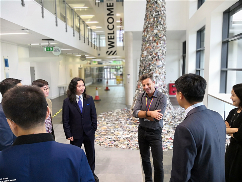 会议结束后,双方就中英文化教育特色、双方办学理念进行了深入的探讨和交流,气氛融洽,讨论热烈。在学校领导的陪同下,英国德比大学校领导一行人参观了我校校园环境,并走入课堂深入工作室了解教学情况。
