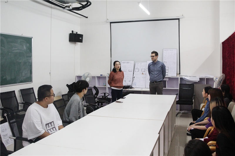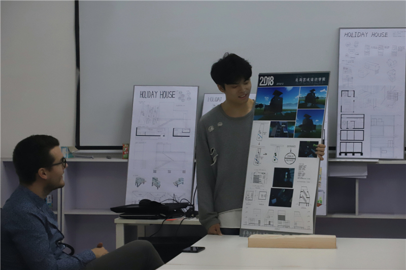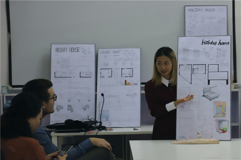 首先,安德拉斯博士介绍了课程内容和国际班的同学们在过去两周的学习表现,肯定了同学们的成绩,通过作品体现出来的设计能力符合佩奇大学的教学要求,随后国际班同学用英语进行了作品的展示与汇报。